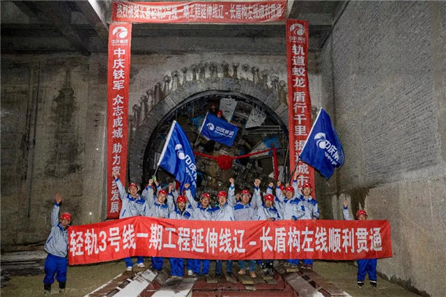 126個晝夜不息,中慶 “鐵軍號”完成輕軌三號線延伸線遼長區間左線貫通!